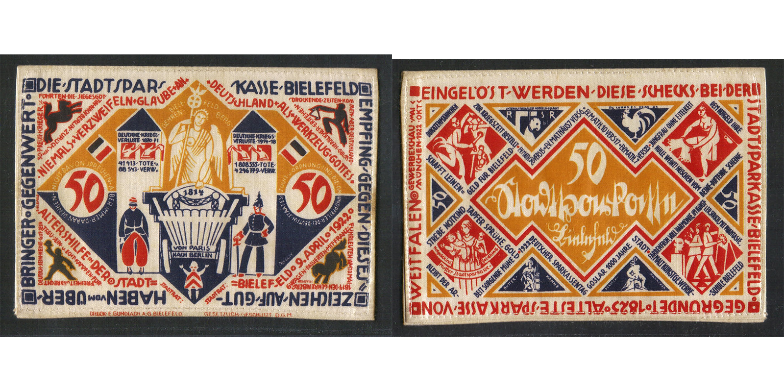Stadtsparkasse Bielefeld Stoffgeld 50 Mark 1921