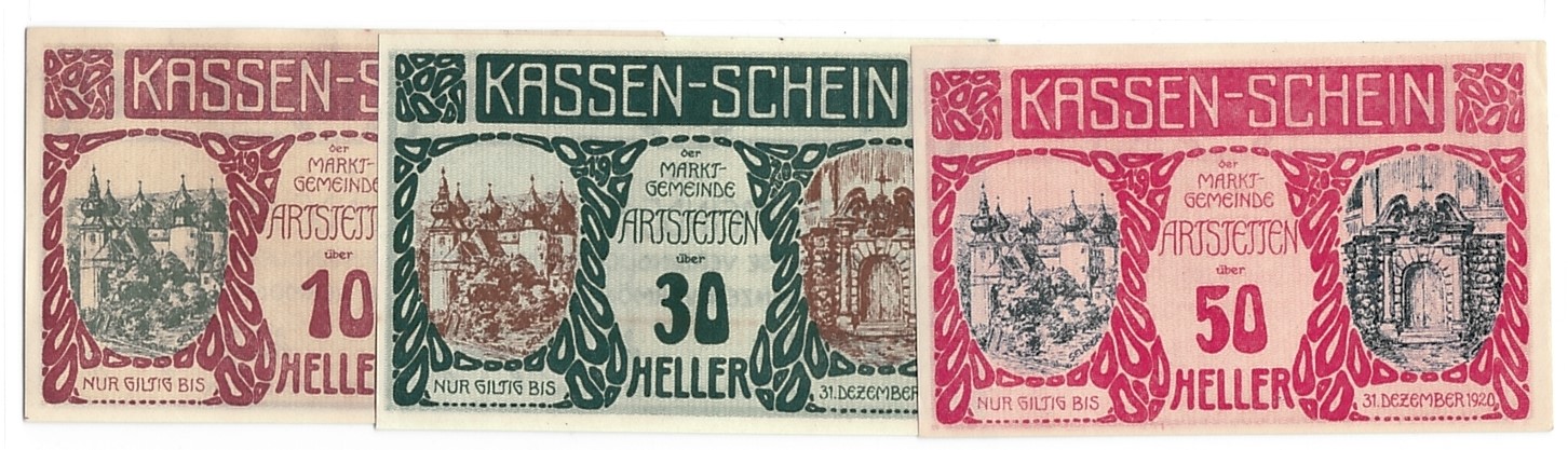 NÖ Kassenschein der Marktgemeinde Artstetten 1920