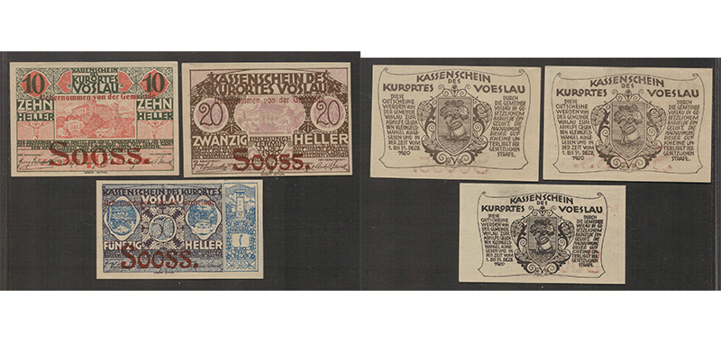 NÖ Kassenschein des Kurortes Vöslau 1920 Aufdruck