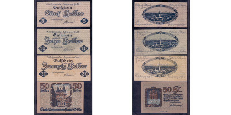 OÖ Notgeld Schwanenstadt 5,10,20,50 Heller 1920
