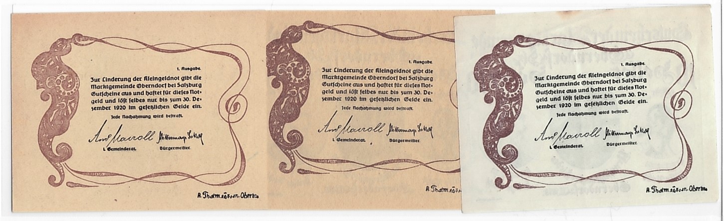 Salzburg Gutschein der Marktgemeinde Oberndorf 1920 I. Ausgabe