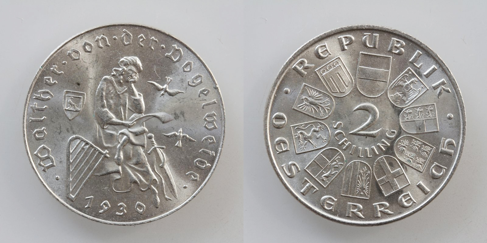 Österreich 1. Republik 2 Schilling 1930 Silber Vogelweide