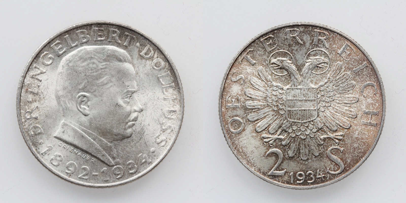 Österreich 1. Republik 2 Schilling 1934 Silber Dollfuss