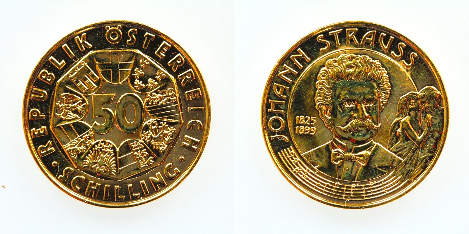 Österreich 50 Schilling 1999 Johann Strauß vergoldet