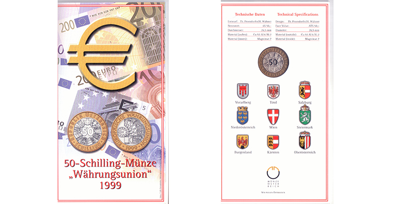 Österreich 50 Schilling 1999 Währungsunion Blister