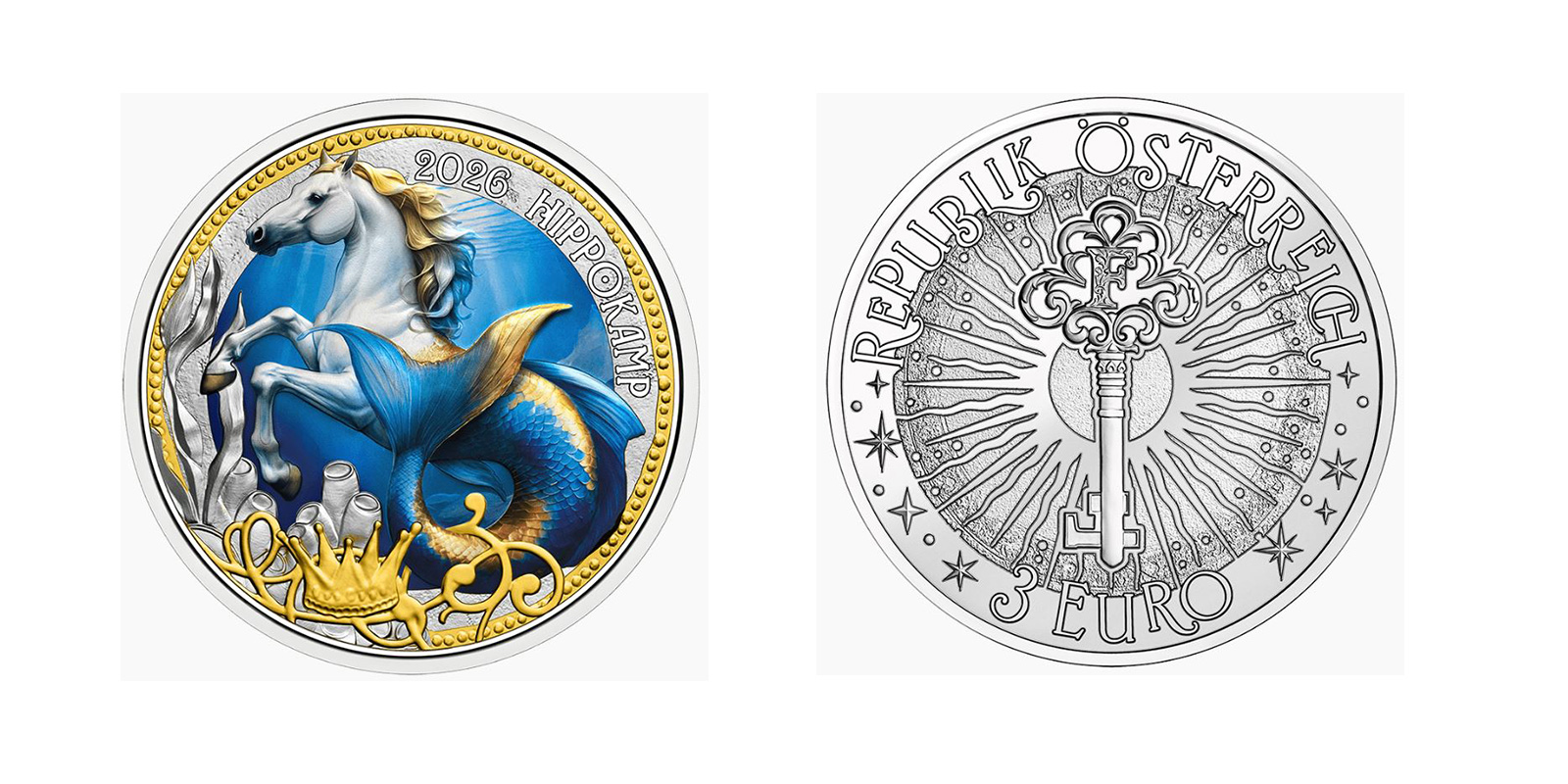 Österreich 3 Euro Fantastische Fabelwesen 2026 Der Hippokamp