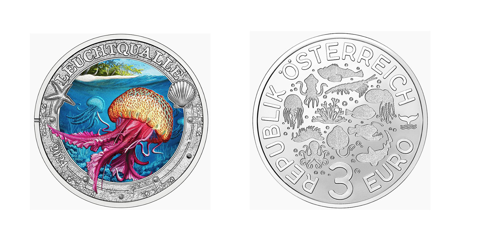 Österreich 3 Euro Leuchtende Meereswelten 2024 Leuchtqualle