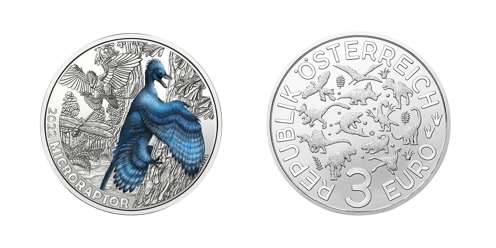Österreich 3 Euro Super Saurier 2022 Microraptor gui