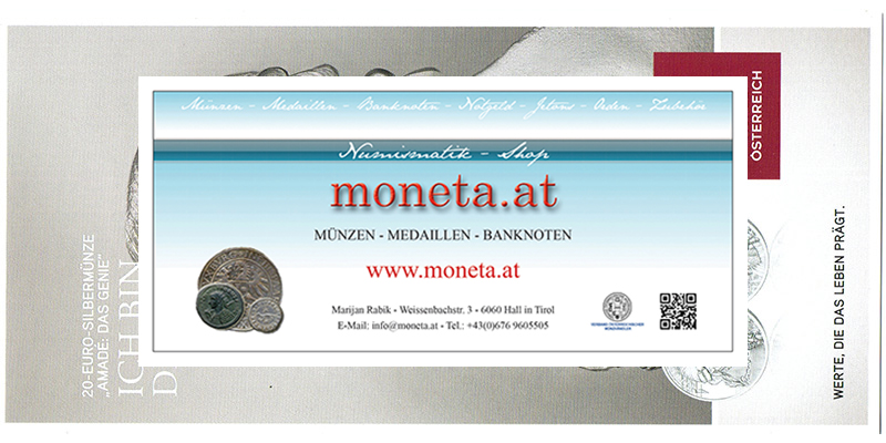 FOLDER / FLYER zu 20 Euro 2016 Silber Mozart Das Genie