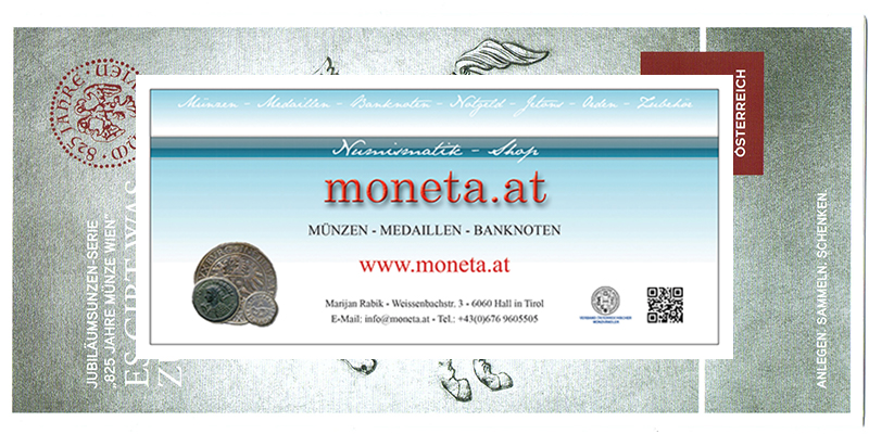 FOLDER / FLYER zu Jubiläumsunzen-Serie "825 Jahre Münze Wien"